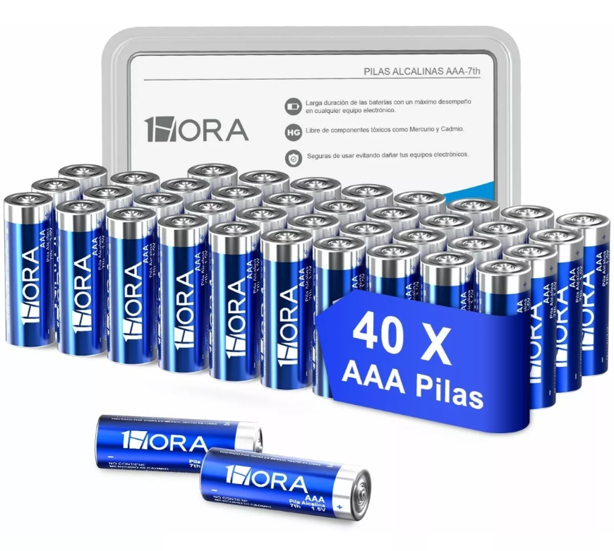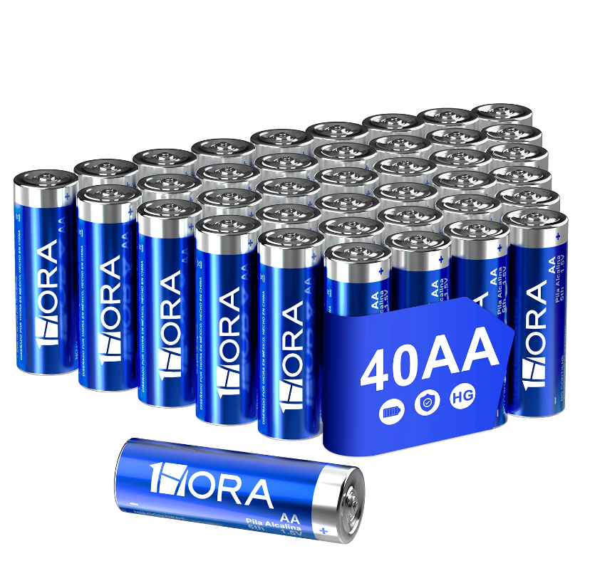 1 HORA Paquete de 40 pilas AA alcalinas industriales LR6 de 1.5V, tiene una conductividad superior, reduce efectivamente el consumo de energía para asegurarla la potencia de la pila duración larga