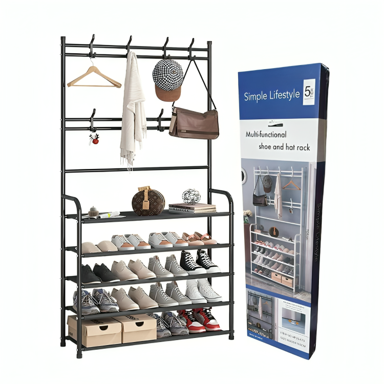 Organizador versátil diseñado para maximizar el espacio de tu hogar. Con cuatro niveles de almacenamiento y perchero integrado, ofrece soluciones prácticas para guardar ropa, accesorios y objetos diversos. Sus dimensiones de 60x28x154 cm lo hacen ideal para rincones y espacios reducidos. Estructura robusta que combina funcionalidad con un acabado elegante, perfecto para dormitorios, entradas o áreas de trabajo. Transforma el desorden en organización con estilo.